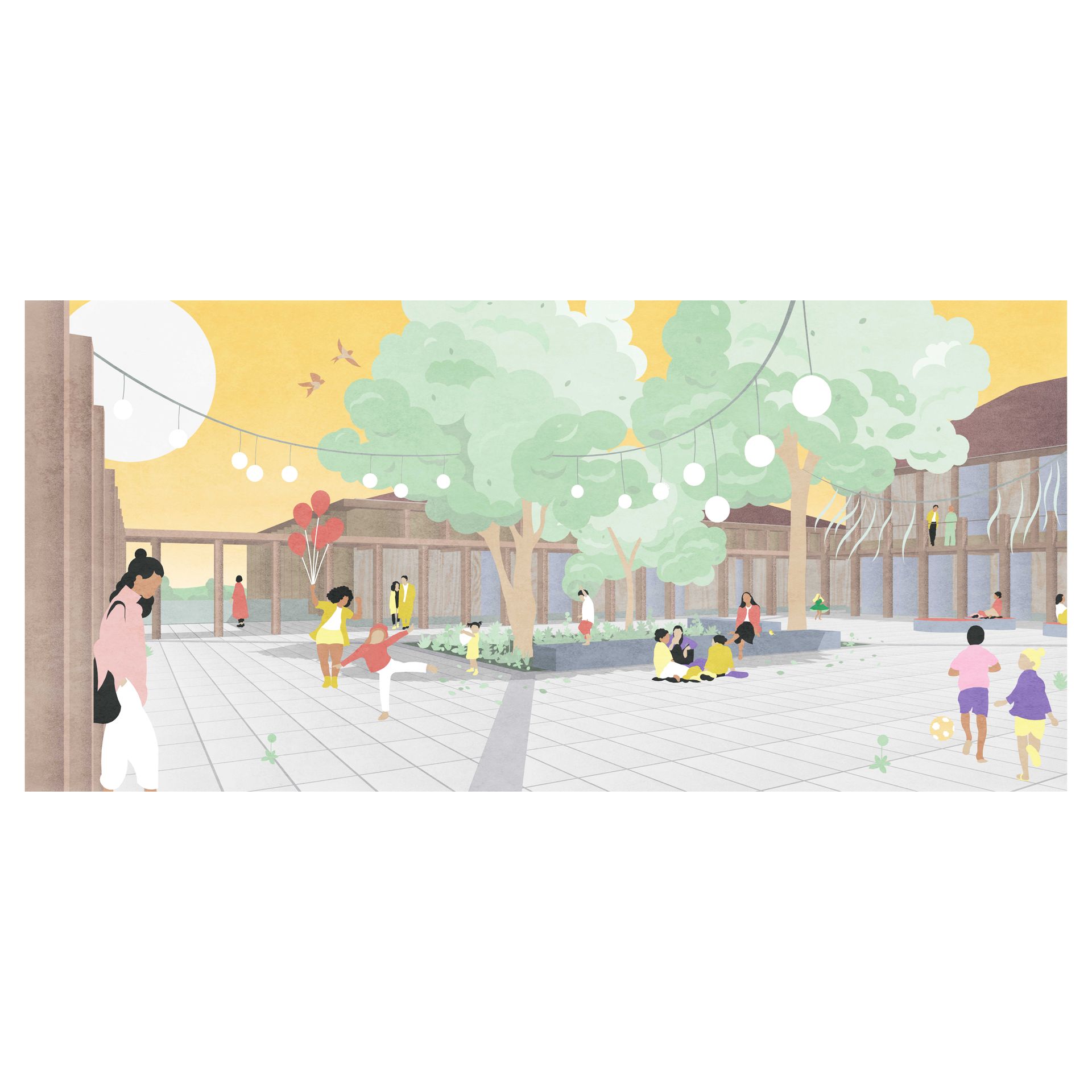 Program: new building structure, children- and community center, coffee house and event hall